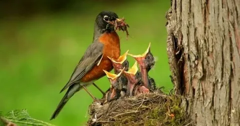 The feeding process of a baby bird in USA showcases extraordinary teamwork between bird parents. Different species provide diets suited to their chicks’ nutritional needs. Insect-eating birds deliver soft, protein-rich meals, while others feed seeds, fruits, or small grains. Parent birds may regurgitate food to make digestion easier for their young. Feeding occurs frequently throughout the day, gradually decreasing as chicks grow stronger. In many U.S. neighborhoods, bird enthusiasts place feeders or birdbaths to support nesting families during the breeding season. This additional food supply can make a difference in chick survival. The tireless dedication of parent birds, seen across America’s forests and cities alike, highlights the deep natural bond and instinctive care within avian communities.